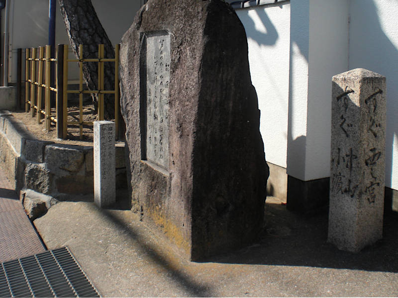 「西国街道昆陽宿跡碑」このタイプの石碑案内を数多く見かける。また真新しい「西国街道」とだけ書いたものもポイント・ポイントに建っている。