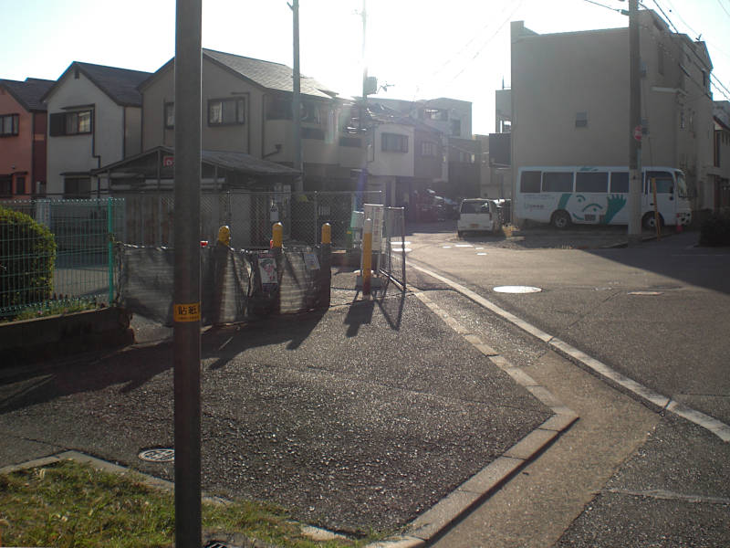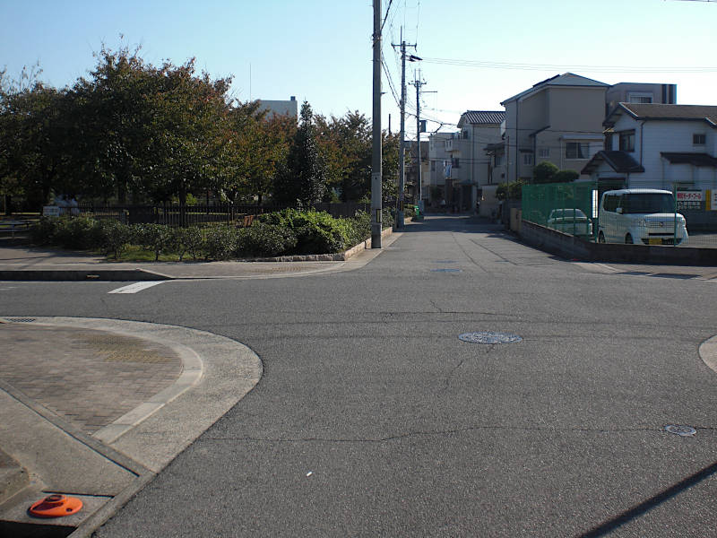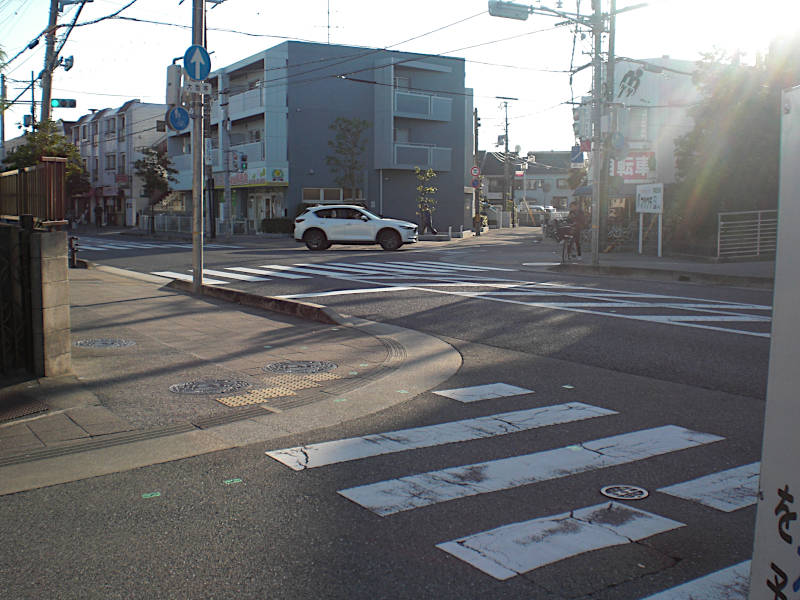 左折して初めての十字路を右折する。この辺りは区画が完全に再整備され道路が付け変わっている感じがする。(9:04)