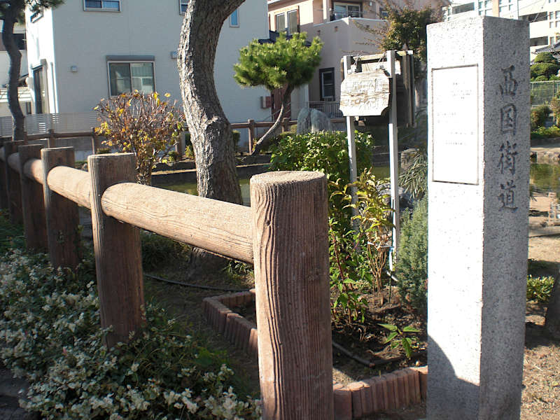 環状線の向こう側で右折して、それに沿って行くと環状線自体国道171号線に合流する。しばし歩いたところに西国街道の道標が有った。(11:28)