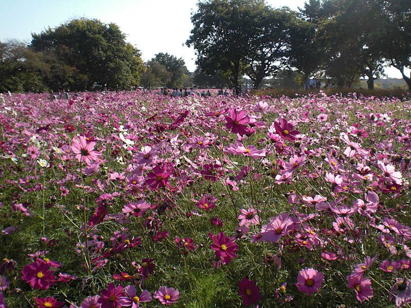 タイミング良くコスモス畑満開。オレンジ色のコスモスもとても綺麗でした。それてしても人が多い。(14:27)