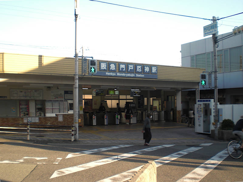 踏切を渡って「阪急門戸厄神駅」を通過する。ここは当初西宮まで歩けなかった時の予備終点にしていたところである。(15:43)