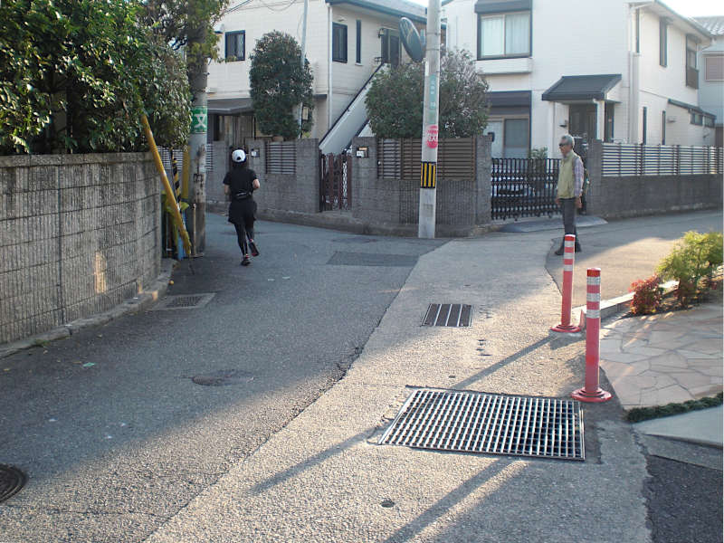 正しくは、一筋目を来ると公園にぶつかり右に折れざるを得ない。(13:59)
