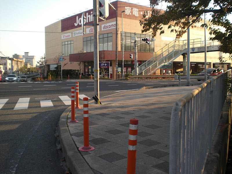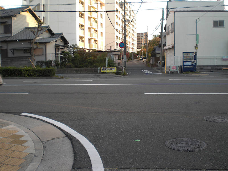 山手幹線と言う4車線の道路に突き当たる。残念ながら西国街道専用横断歩道は無い。左も右も交差点はちょっと距離が有るが回るべきだろう。(16:24)