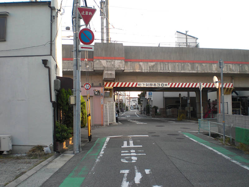 阪急神戸線の高架下を抜けて南下する。(16:20)