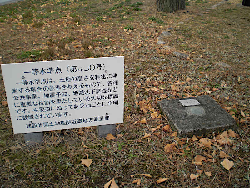 一等水準点」。土地の高低を精密に測定する為の基準となるもので主要道約2kmごとに設置されているとある。