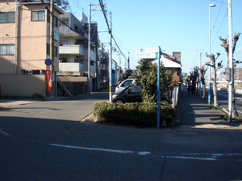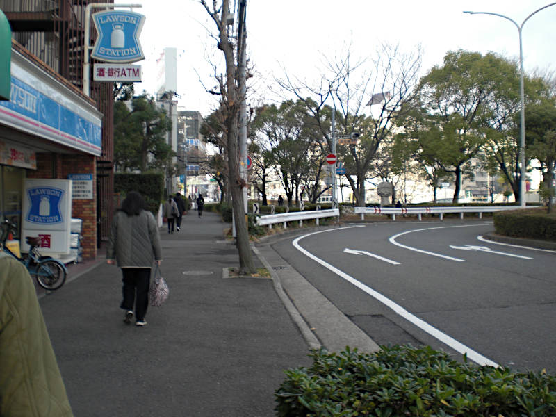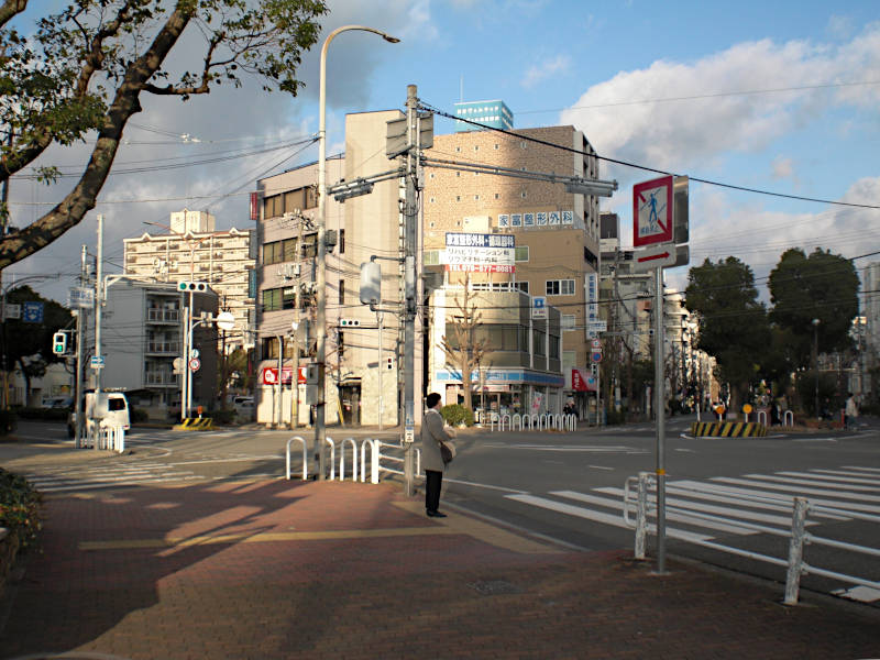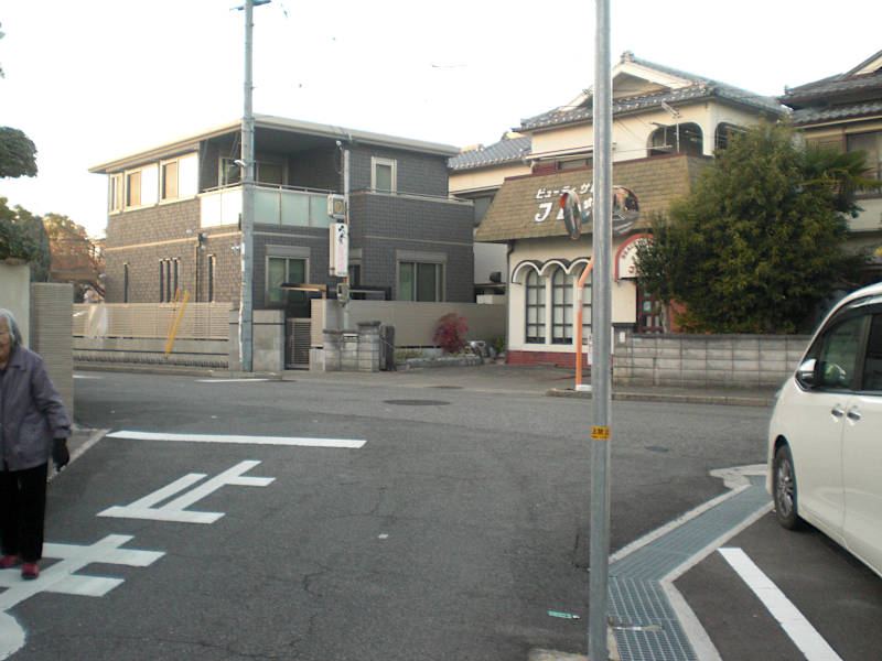 山陽電鉄の高架を越え、JR神戸線の高架を越えて三筋目(セブンイレブンが有る)の十字路を左折する。(16:04)