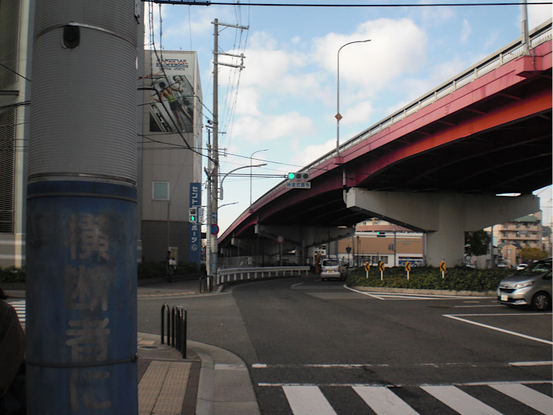 阪神高速3号神戸線の高架が見えて来る。(9:31)