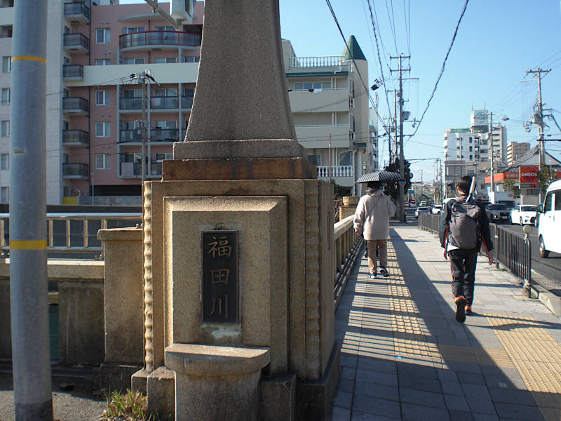 福田川に掛かる「福田橋」を渡り、垂水市街に入る。大正15年に掛けられたアーチ方の石橋で、国道を支える橋としては最古参なのだそうだ。(12:04)