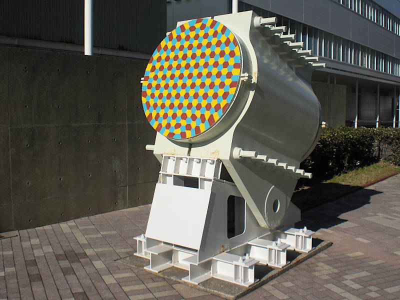明石市立天文科学館の子午線標示柱が見える。デカい!!