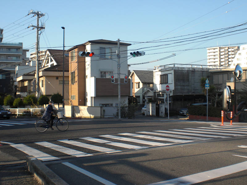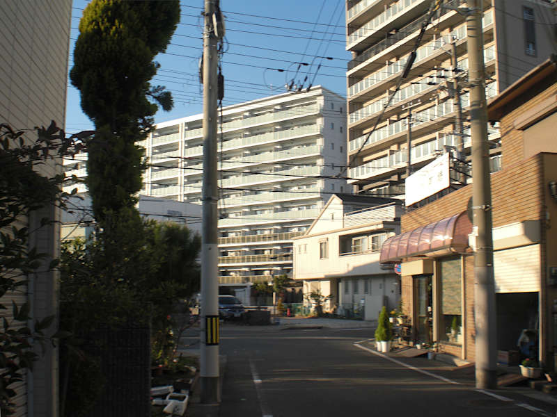 細い道もまたすぐ、大きなマンションに囲まれたような交差点に突き当たり、右に折れて北進する。(15:53)