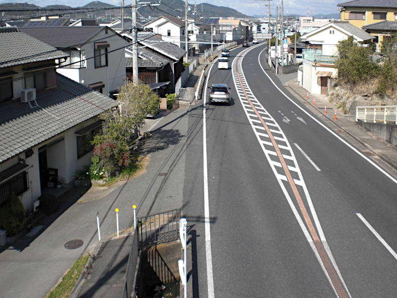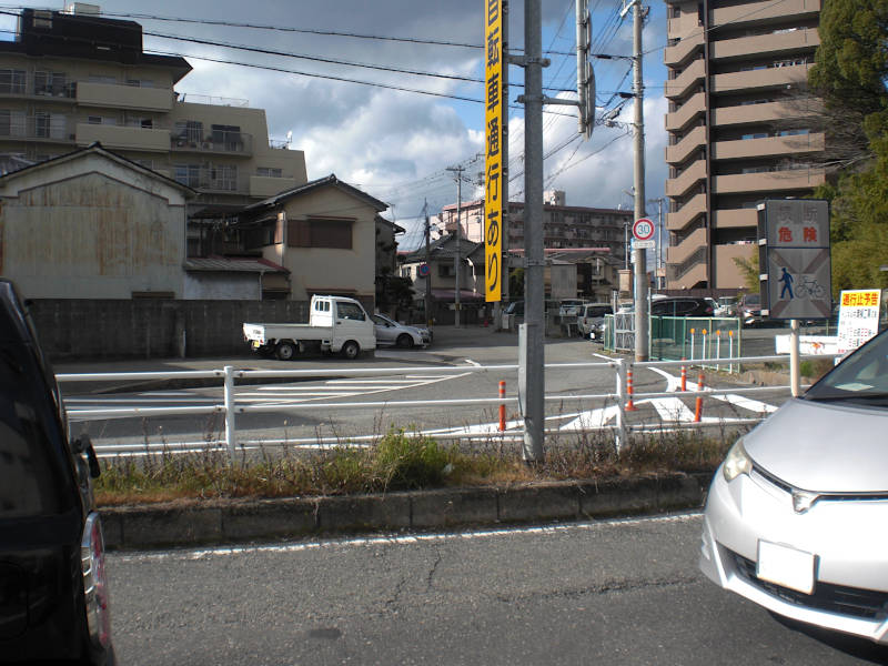 播但線の高架の手前[京口駅南]で車道北側の歩道に移っておくと良い。