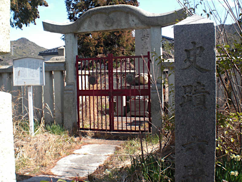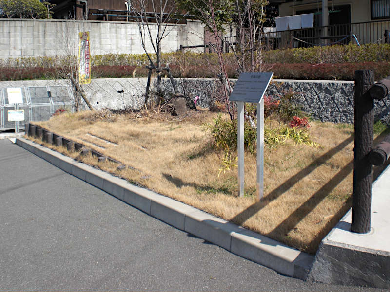 暫く行くと、古びた建物と並んで石塀に囲まれた塚が有る。「