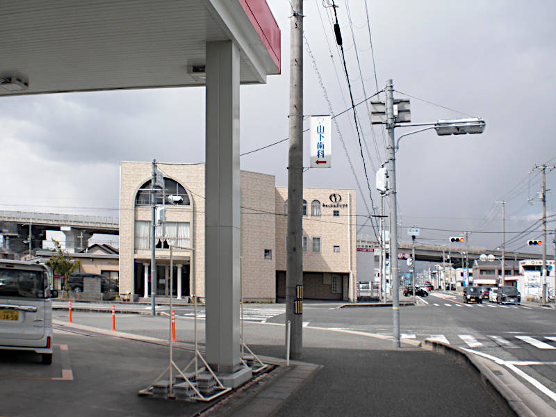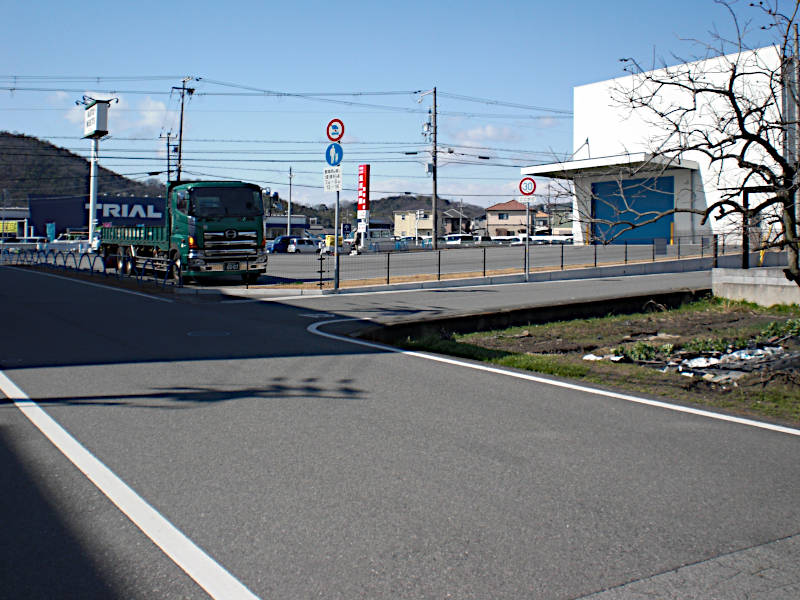 寺社の境内を回り込むように西国街道は右に折れているのだが、そこは中央分離柵で通れないので近くの国道2号線沿いの横断歩道へ迂回する。(15:18)