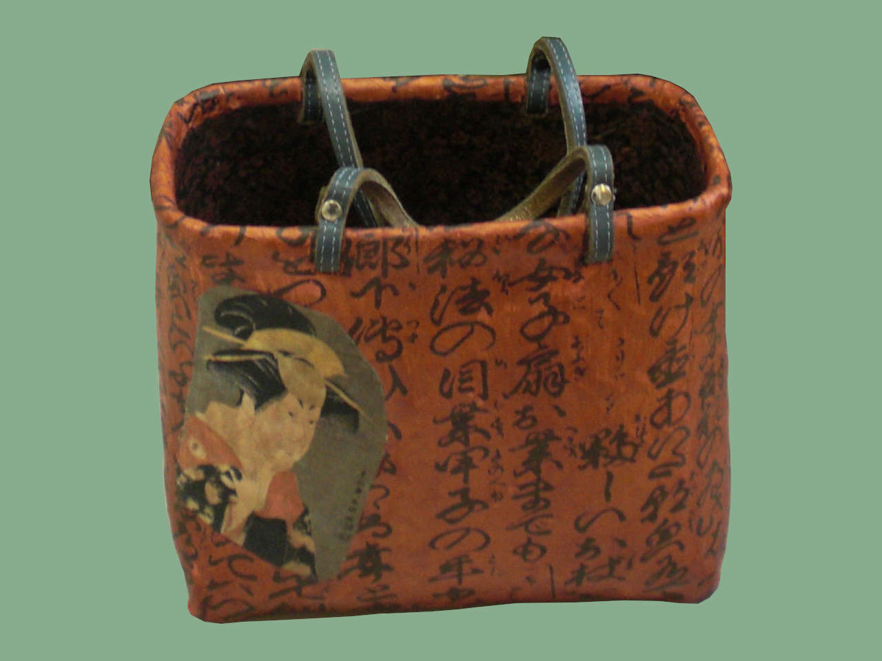 中でもツル篭に古紙を巻いて柿渋で固めたこの手篭は素晴らしいと思って撮らせて貰った。