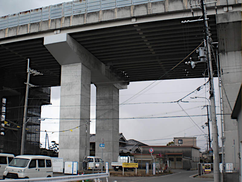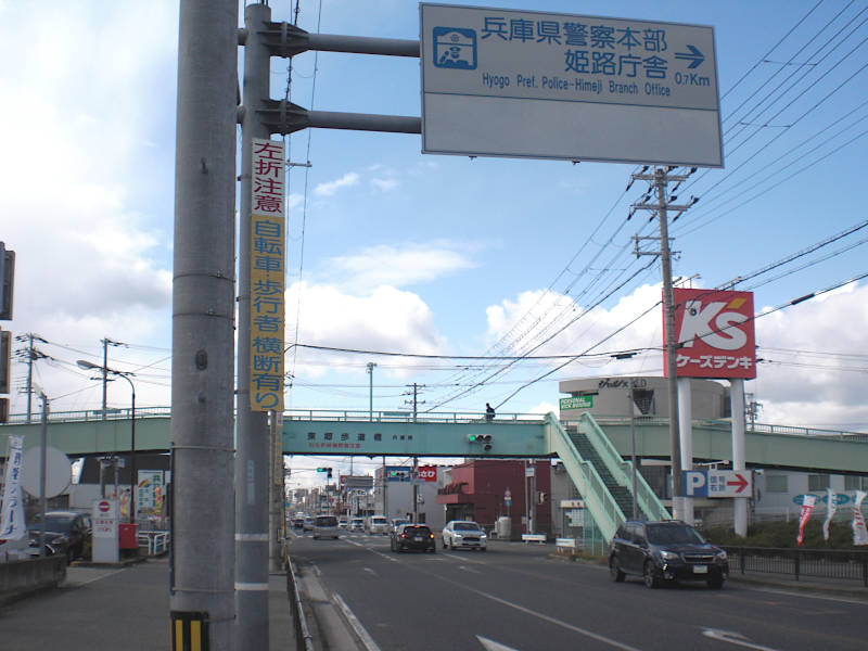 姫路バイパスの高架が見えて来る。先ほどの踏切同様に街道は直線であっただろうが、少し迂回する様にガード下をくぐったら左へ進む。