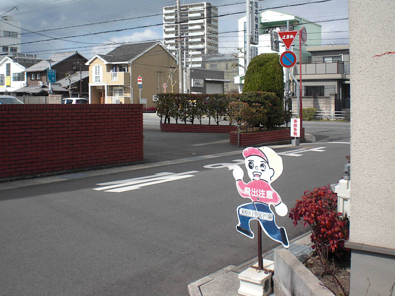 一筋進むと、姫路市立東光中学校の体育館が有り、道路に面して大きな案内板が有る。「