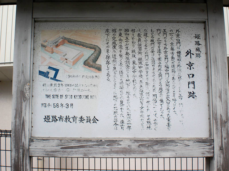 姫路城趾 外京口門跡」の説明が図入りで書かれている。(14:06)