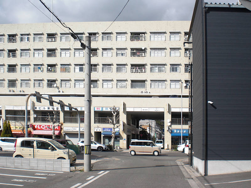 ただ、この細い道が間違いなく西国街道だと確信できた理由は、ビルを突き抜けてまで続いていることである。