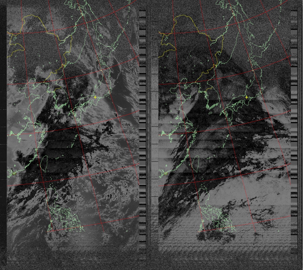 気象衛星に挑戦するも四苦八苦。今回もソフトの使い方の練習です。前回読み込んだ音声ファイルから生成したグレースケールの画像に対してMap Overlayの合わせ方やその設定をしました。今回は初期の生成に対して自動で Map Overlay がされています。
