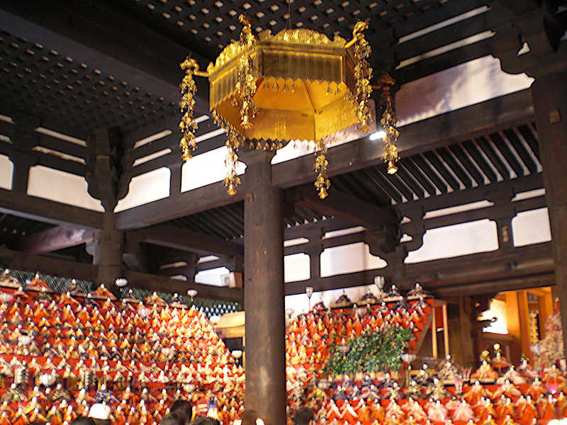 礼堂」(普通では本堂に見えるものは本堂ではない)はお雛さまで一杯である。