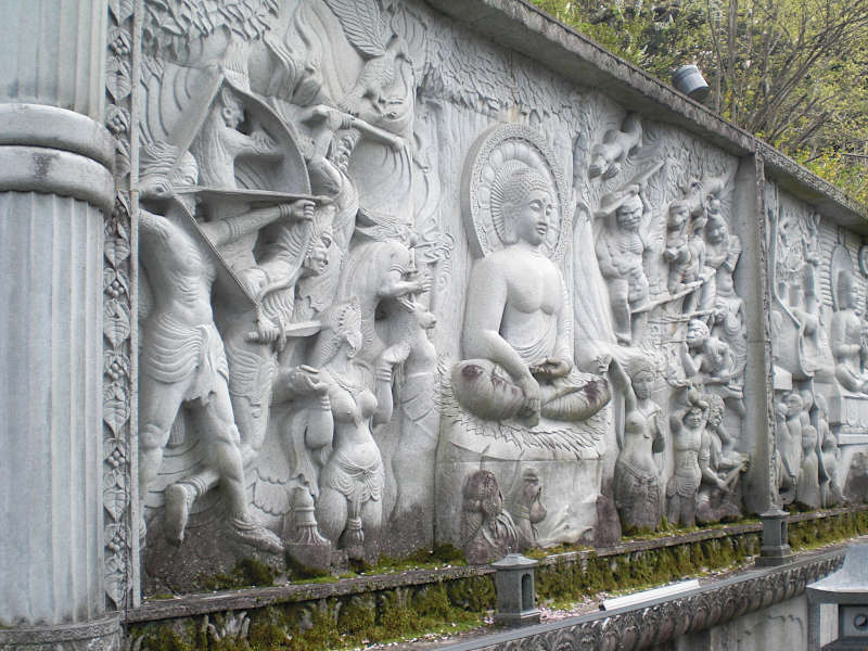 慈眼堂」という一種の門の様なお堂が有り、マーヤ夫人の脇の下から生まれてから涅槃までの、釈迦の一生が記された絵が展示されている。