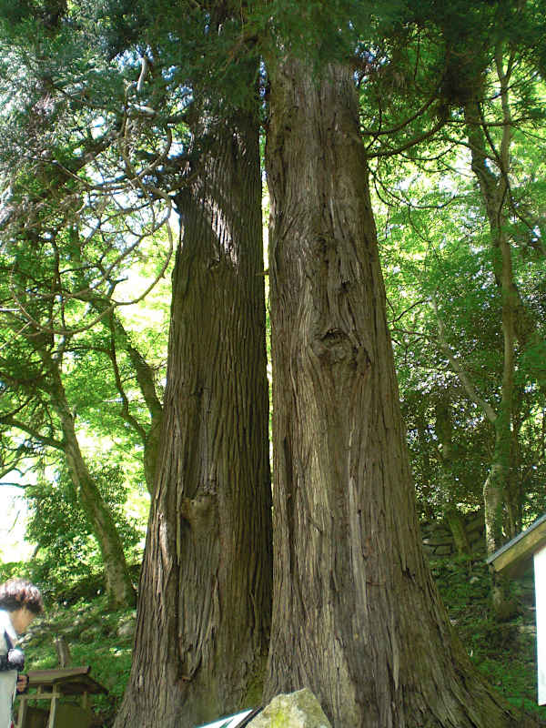 さらに、宗宝蔵の一段上の脇道を道草をするように、右手へどんどん行くと、少し下りになった先に大きな杉の木が2本見えて来る。