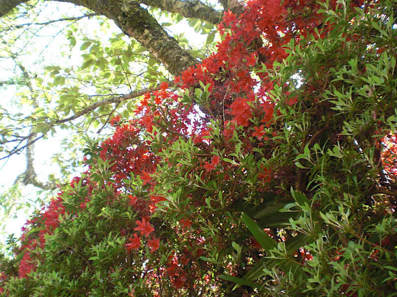受付前から真っ直ぐ奥を見たとき、赤い葉とも花とも分からない丸みのある木が印象的である。