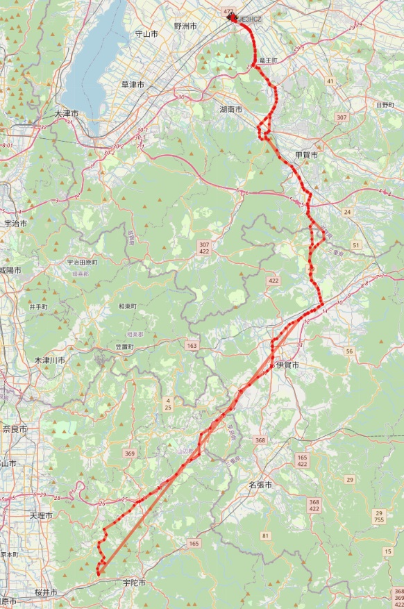 国道165号線ではなく、阪名道路(国道25号線)を外れてから県道38号線をくねくねと山越えしてきた。一部狭いところは有るが、車も少なく山間で涼しく快適な道だった。