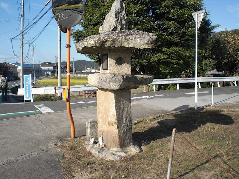 集落を出て開けたところに大きな灯籠が有る。