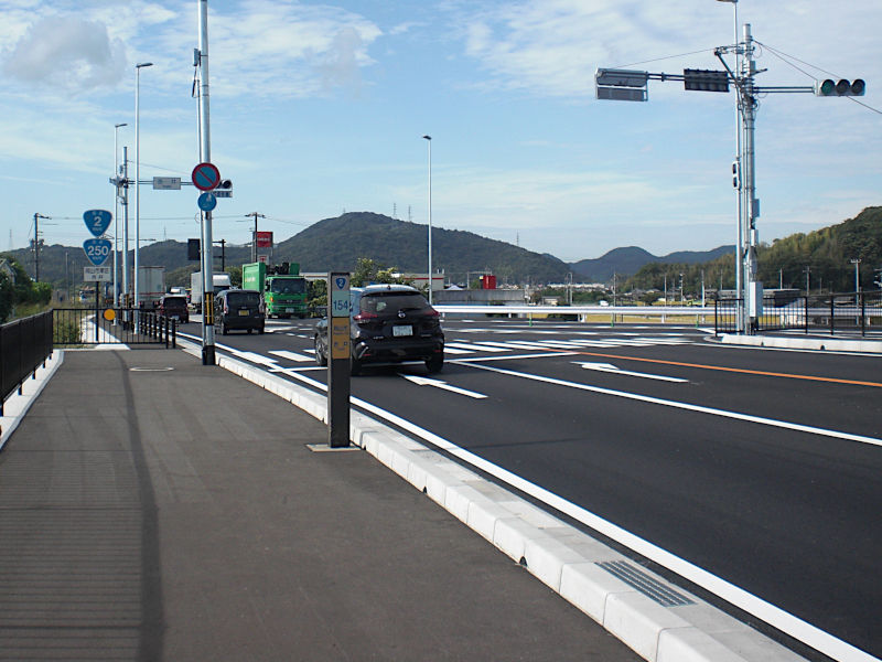 道なりに任せてのんびり歩いて行くと国道2号線から分岐してきた国道250号線の歩道橋に来る。