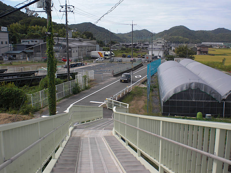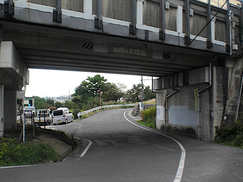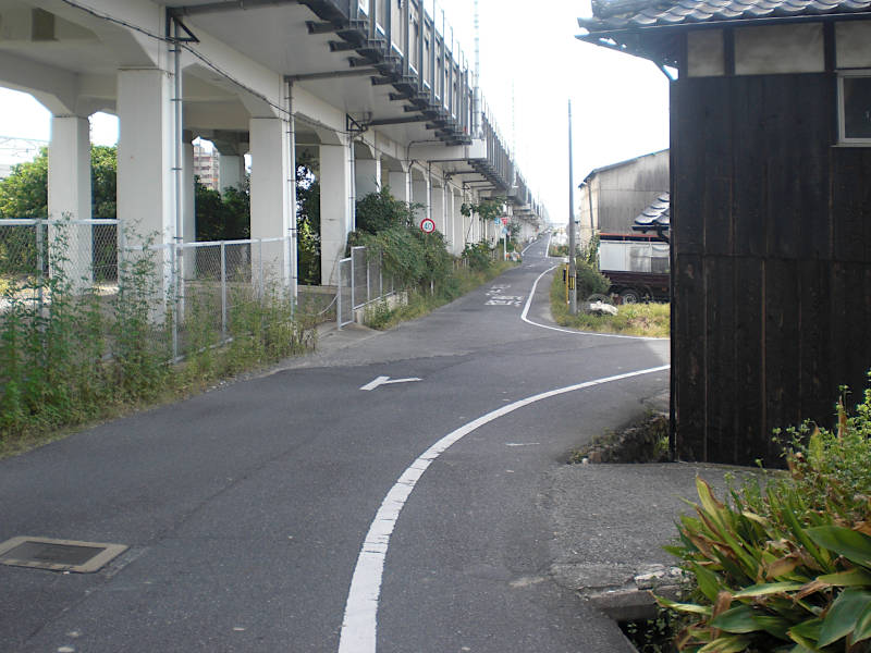 山陽新幹線と山陽本線が寄り添う辺りで高架をくぐり、さらに100mほどの所を右へ逸れる。