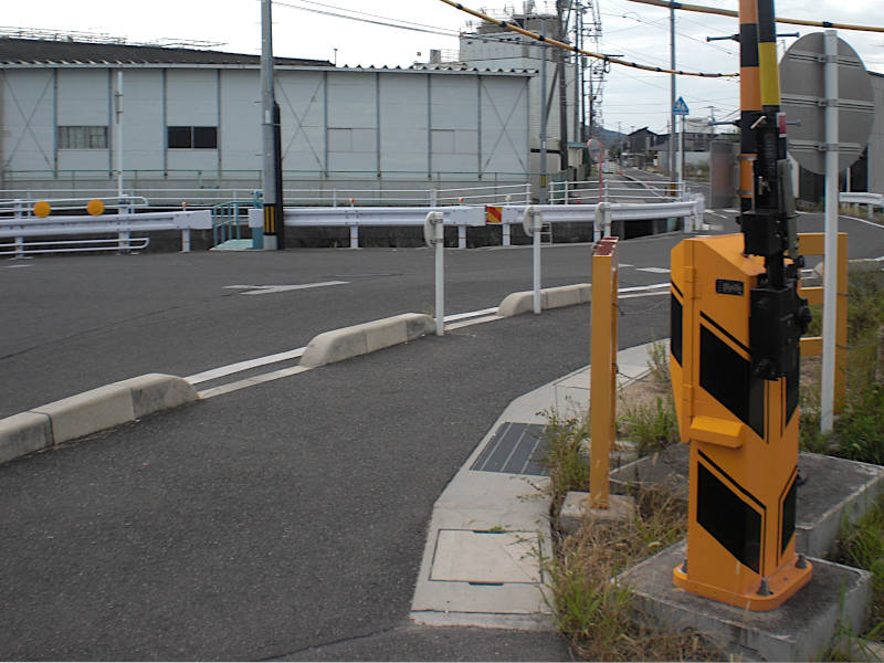 赤穂線が山陽本線に合流する長い踏切を渡る。ここからは一直線の道が続く。