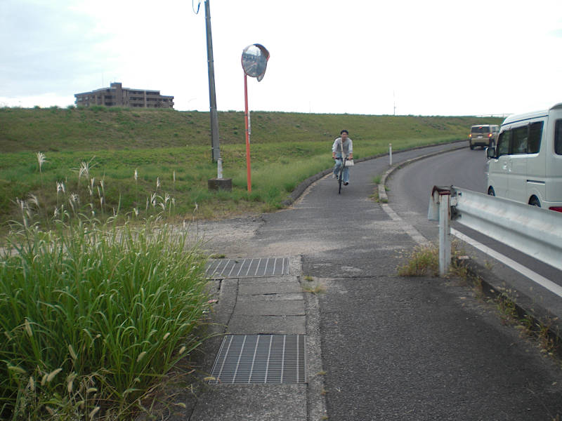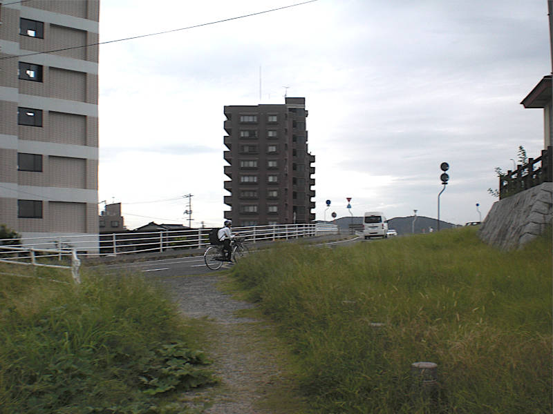 一度斜め右手(真西)に方向を変えて、少し先に堤防が見える交差点に来る。結論から言うと