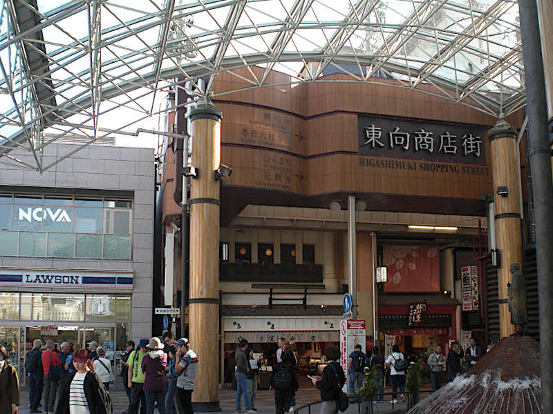 近鉄京都線で近鉄奈良駅へ。東出口の階段を上がると商店街を抜ける。