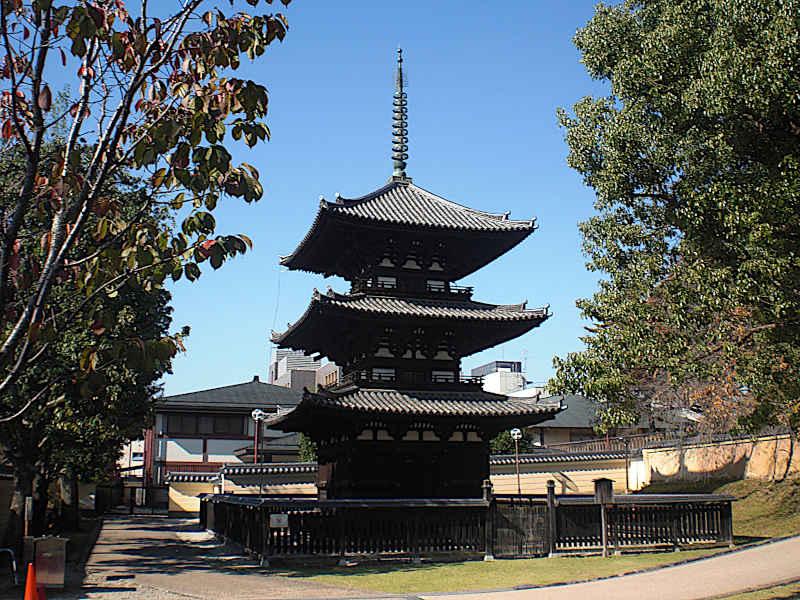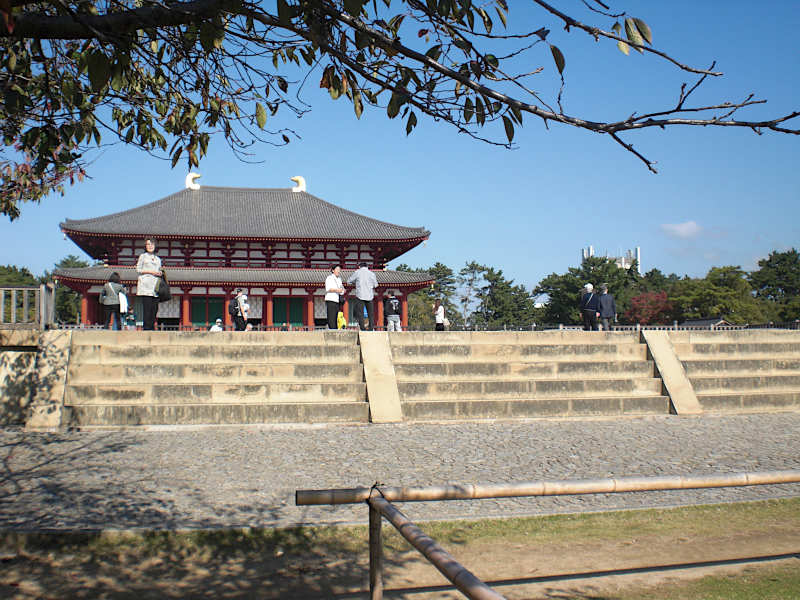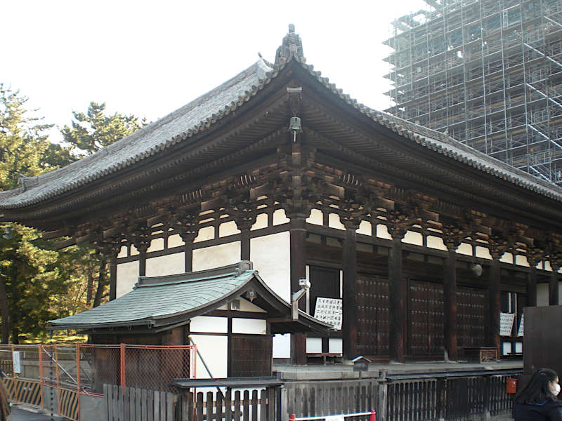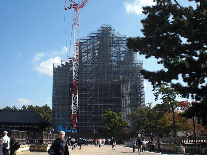 南圓堂から振り返ると、三条通から見えていた修復中の「
