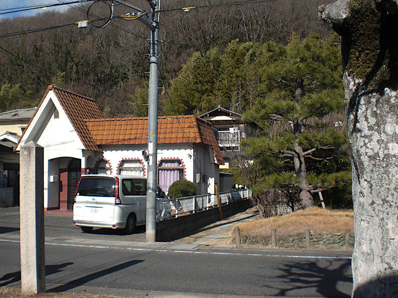 西国街道はカーブせず直進するが、標石の前に