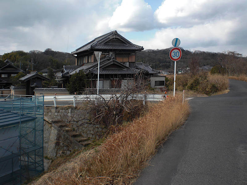 北上する道は旧稲荷道である。歩道は無いが稲荷道を横断して西進する。緩やかな坂を下る途中で