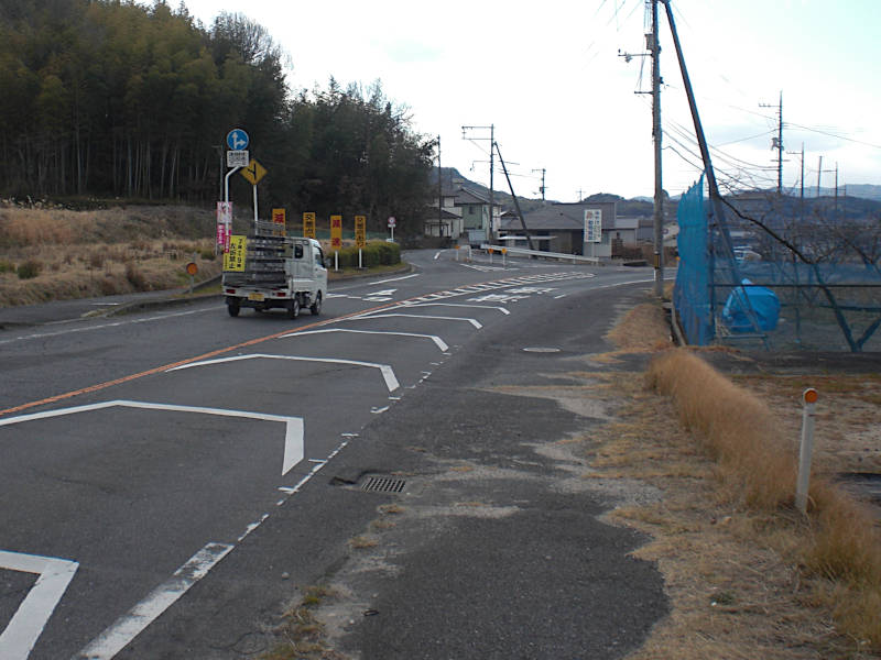 山裾を出て広々としたところで右手へ逸れる西国街道が有る。(13:41)