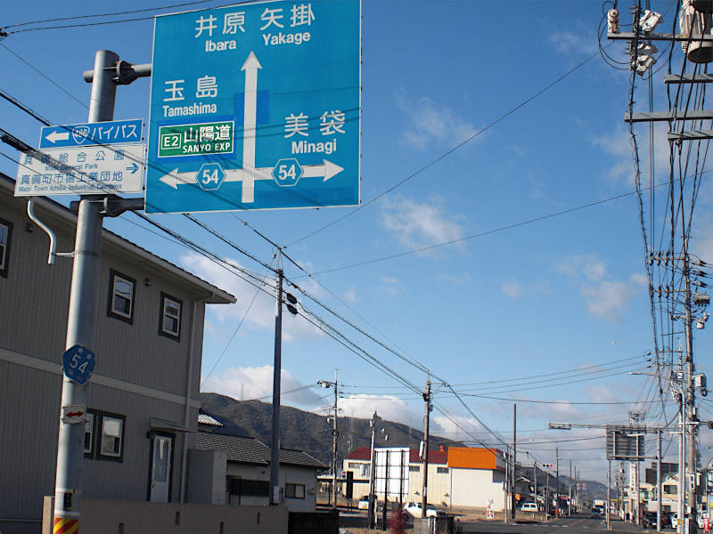道路標識で現代の地理的位置を確認する。ふりがなが無いと読み間違う地名が多い。