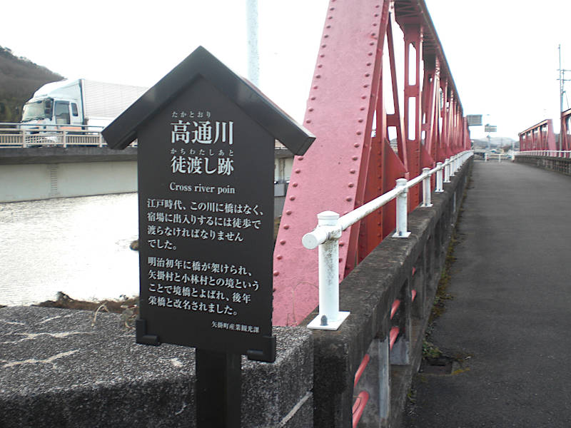 堤防を下りると交差点が有りここから先が矢掛宿と分かる大きな案内が有る。力が入っていそうな予感。(12:14)