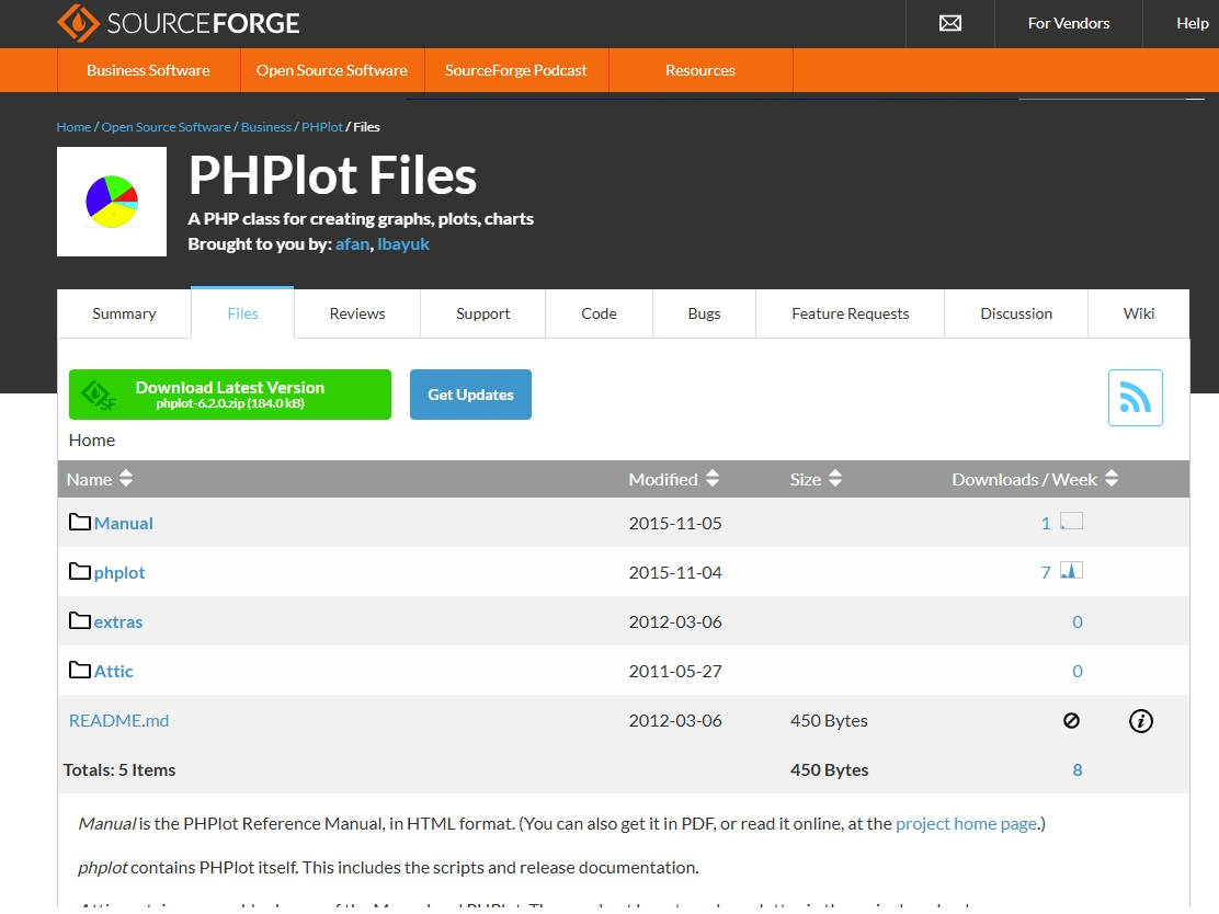 [phplot] をクリック --> [6.2.0] (最も上の最新版) をクリック --> [.tar.gz または .zip] を右クリック -->