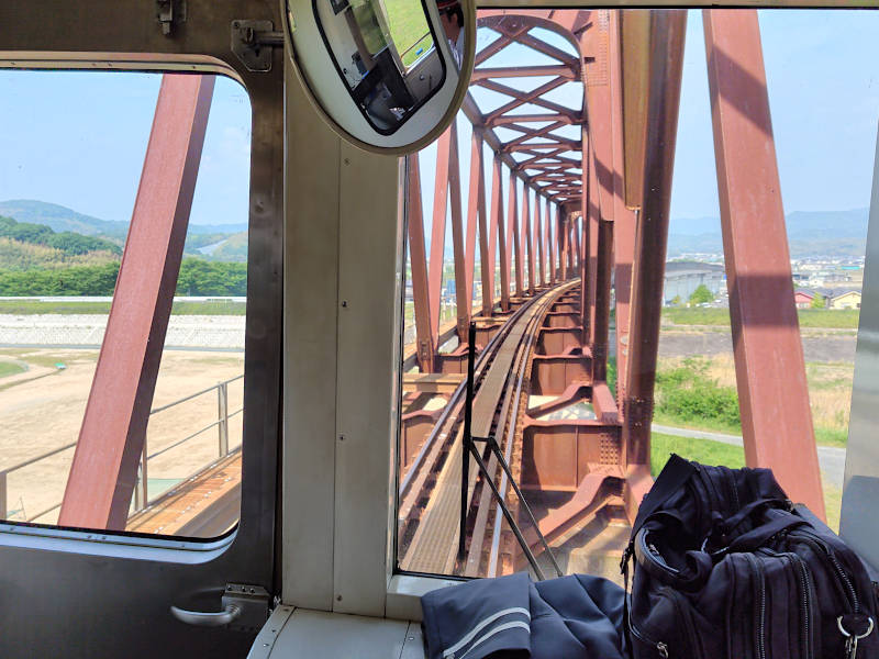 井原鉄道に乗り換えて清音駅を出ると前回早朝に震えながら渡った「高梁川」を渡る。(井原鉄道高梁川橋梁)