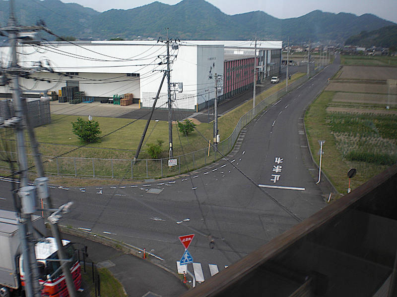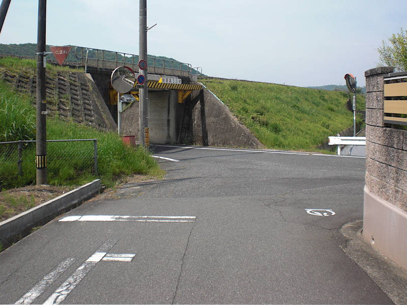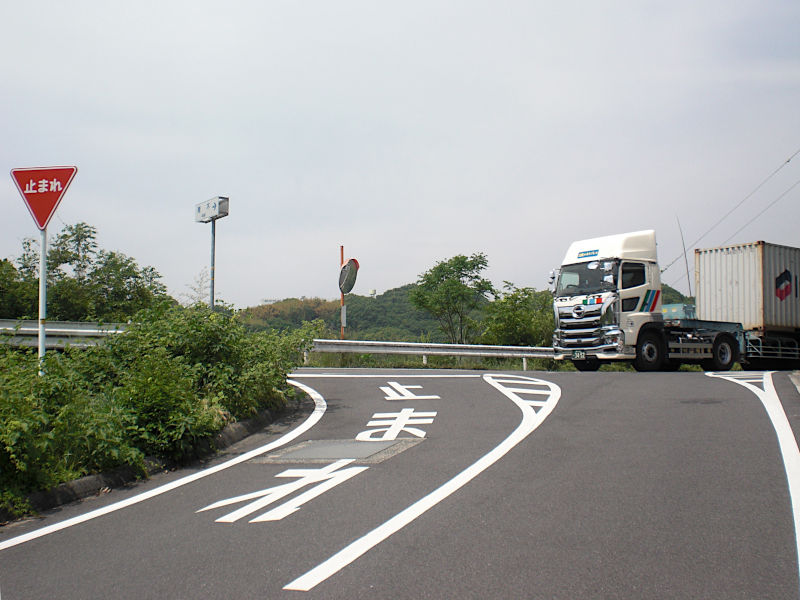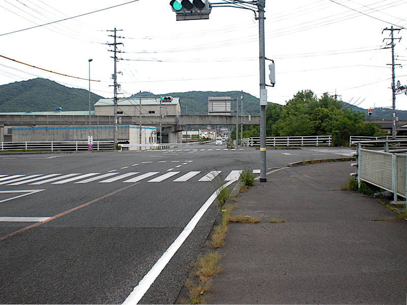 左へカーブして西進すると広い車道に出る。西国街道を歩く人向けには設計されていないので大きく迂回するしかない。