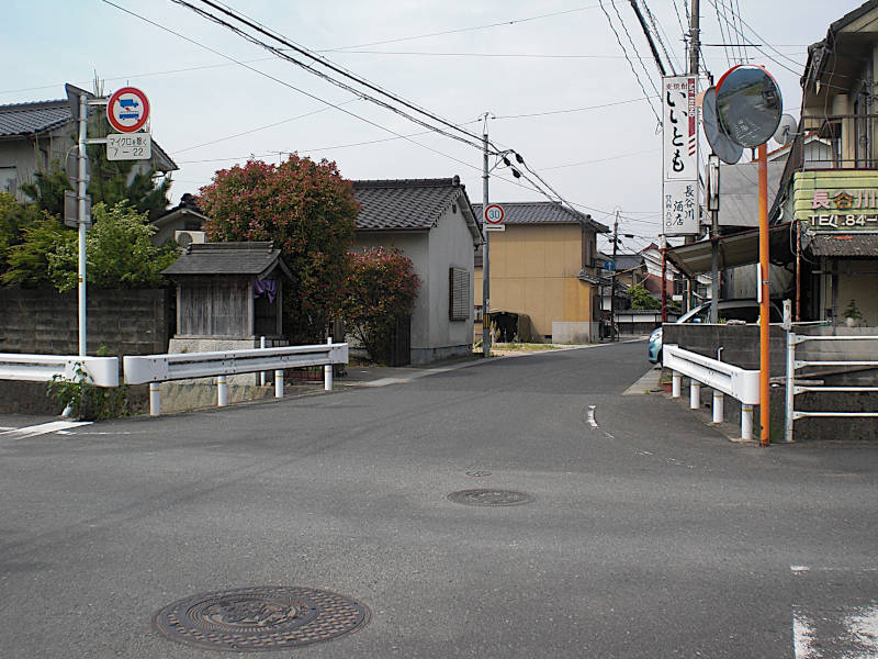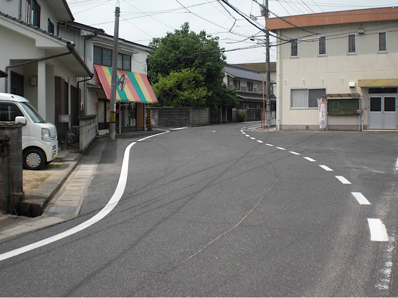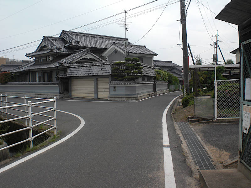 気が付かず一度通り過ぎてしまった。この緩やかに左カーブした道は車社会になった現代に着けられたもので、西国街道は少し手前を左折する。