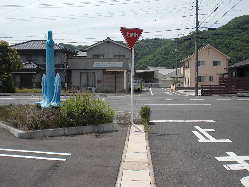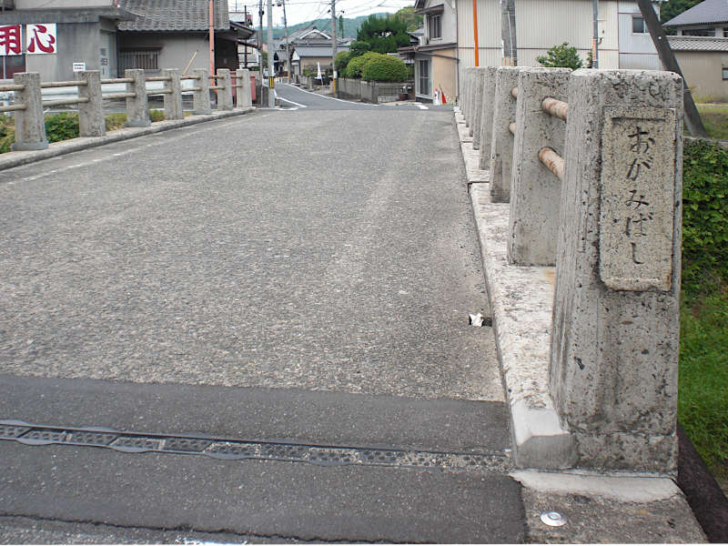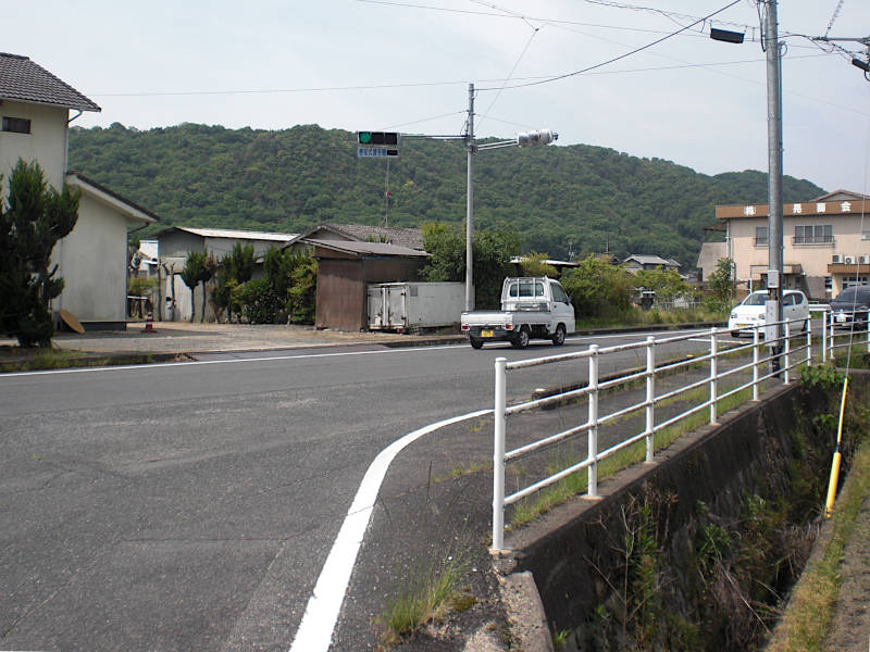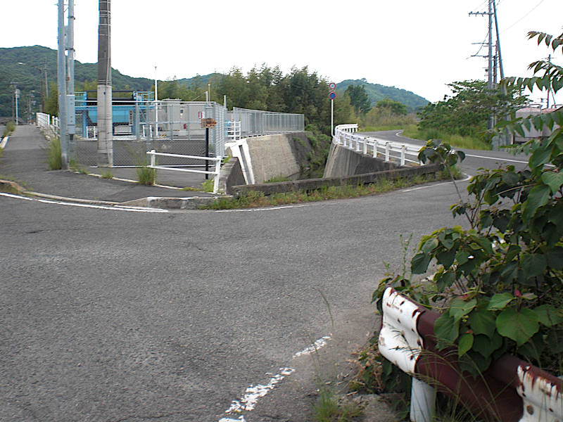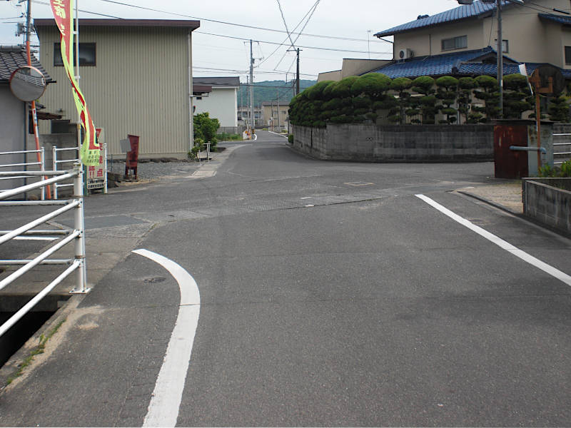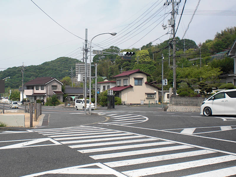 少し南下すると十字路に来る。ここで左から来る旧山陽道と合流して右手(西方)へ向かう。