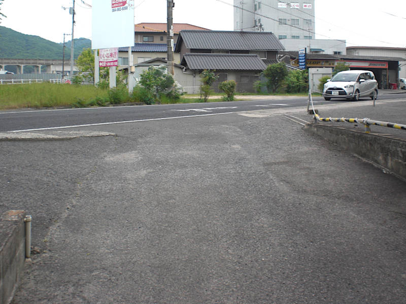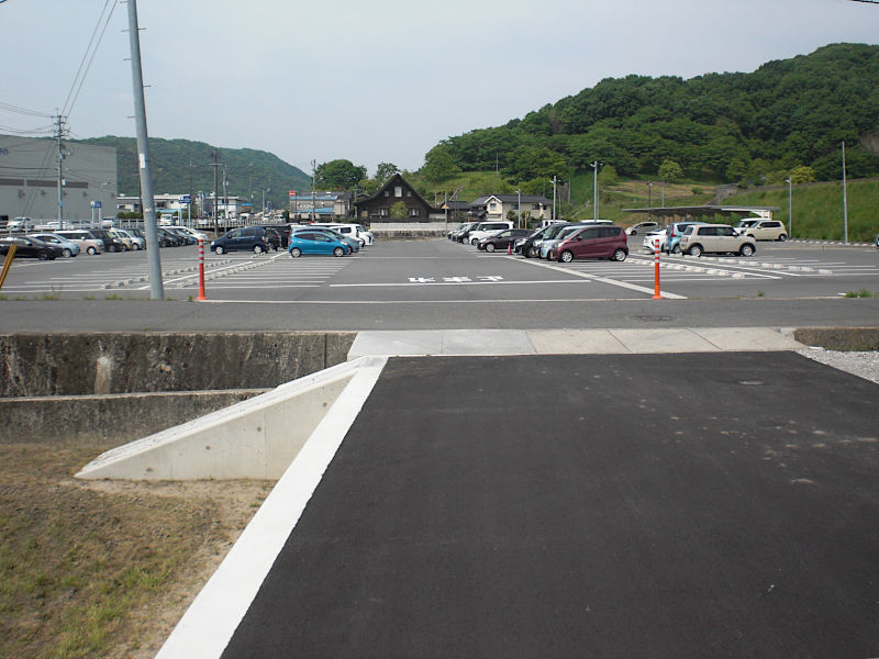 大きな駐車場に突き当たる。たぶん昔は真っ直ぐ街道が有ったのだろうと想像しながら、私有地なので横断せず国道に戻る。