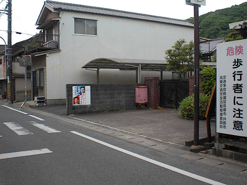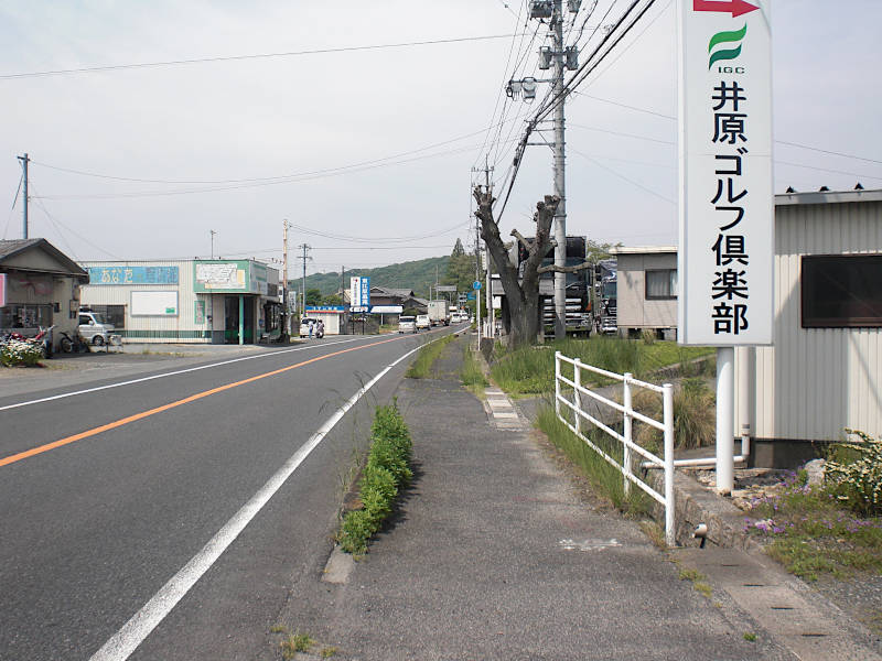 少しずつ下っていくと、丁字路に突き当たる。西国街道は左に折れて再び井原鉄道をくぐるのだが、ここを右へ進むと「