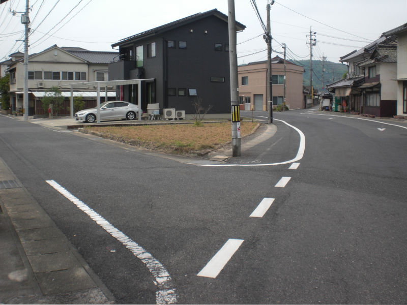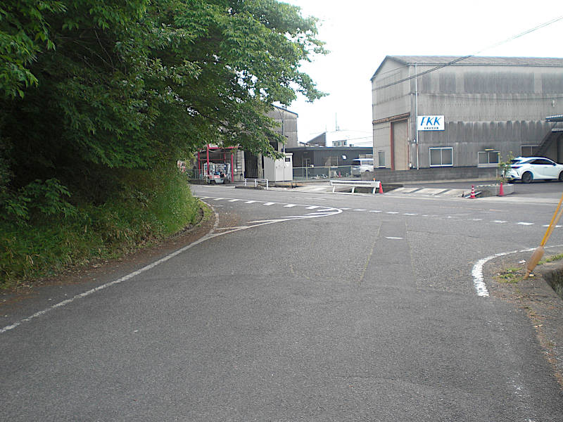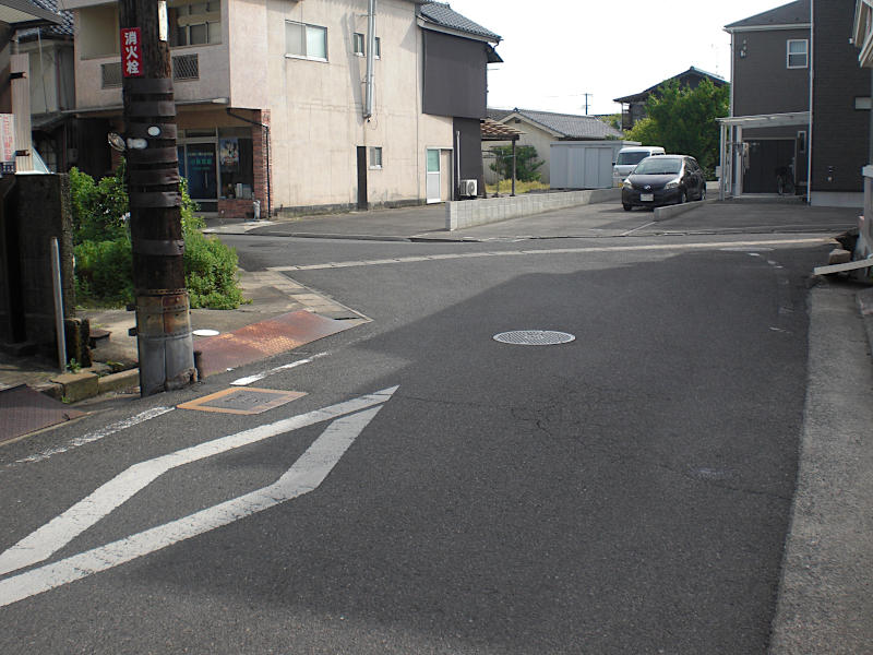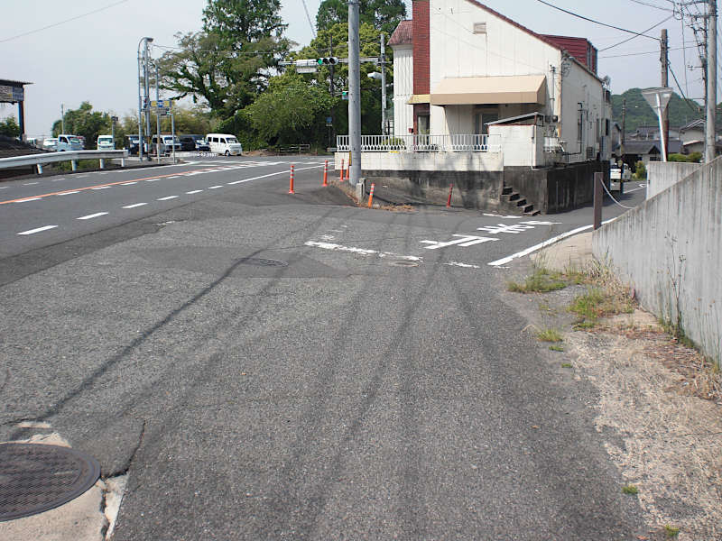 そのポイントである分岐点。横断歩道が無く、時間帯にも依るが交通量が多くカーブで危険。(16:13)