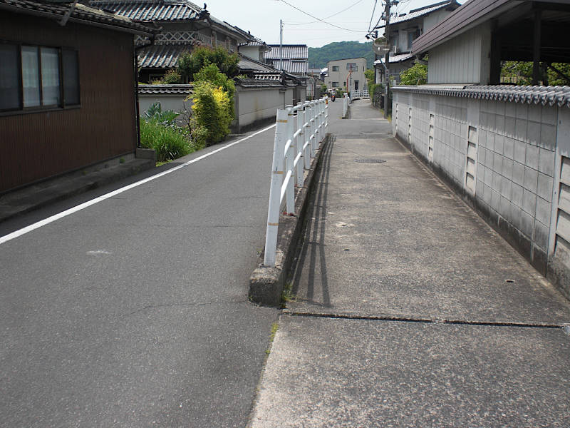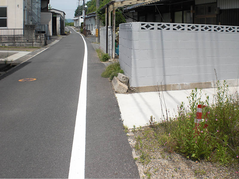 井原鉄道の高架を過ぎて集落に入ると、白く見えるコンクリートの路地が有る。