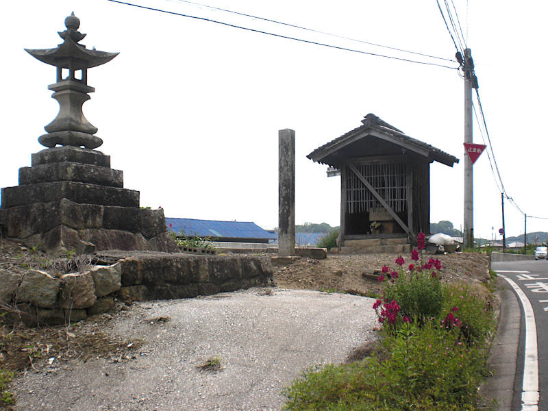 大きく右カーブしてしばらくすると、右手に少し広い場所が有って、小さな祠と供に「